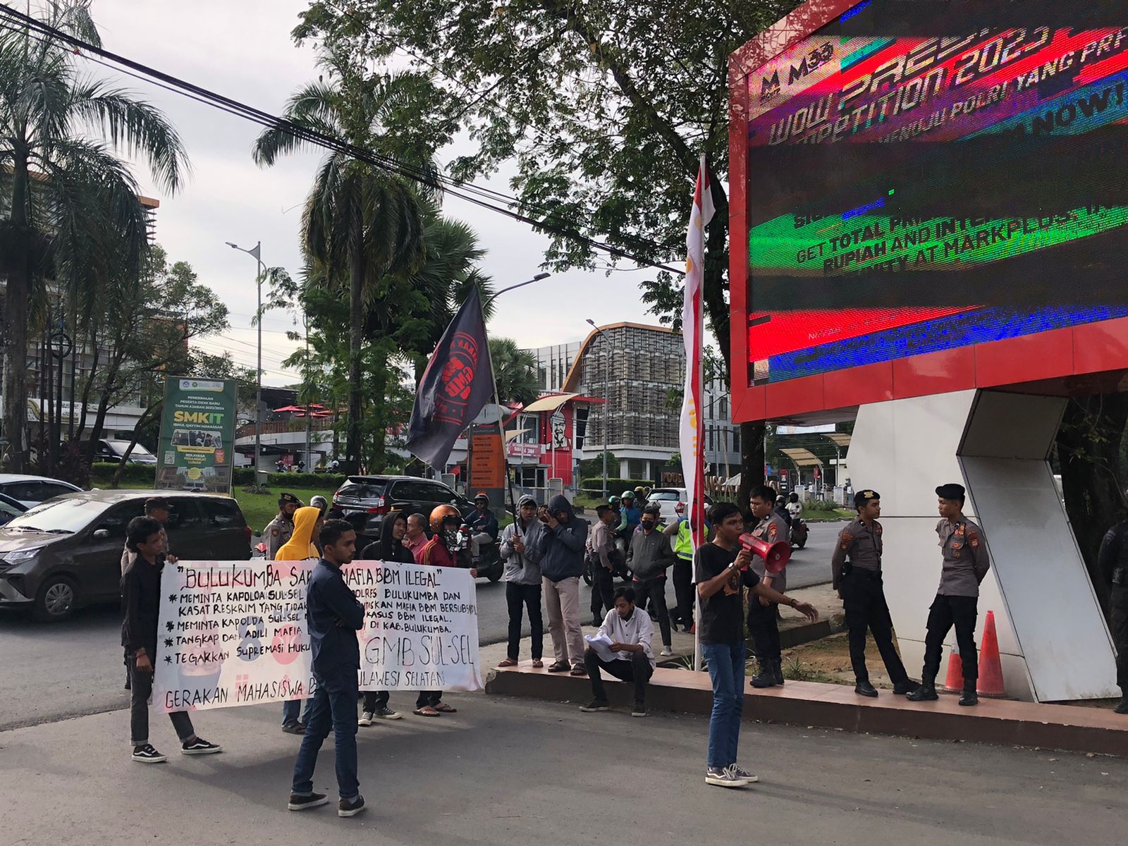 MAKASSAR– Gerakan Mahasiswa Bersatu Sulawesi Selatan (GMB Sulsel) melakukan aksi anjuk rasa di Mapolda Sulsel (13/6/23)