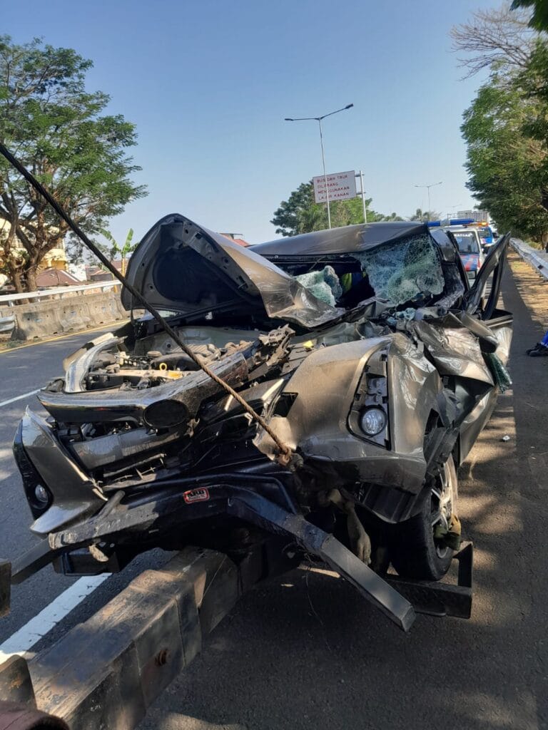 Makassar– Sebuah kecelakaan lalu lintas terjadi di Jalan Tol Reformasi Seksi 2, Kecamatan Tallo, Kota Makassar, pada Sabtu pagi (19/10), sekitar pukul 07.10 WITA.